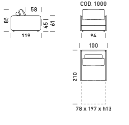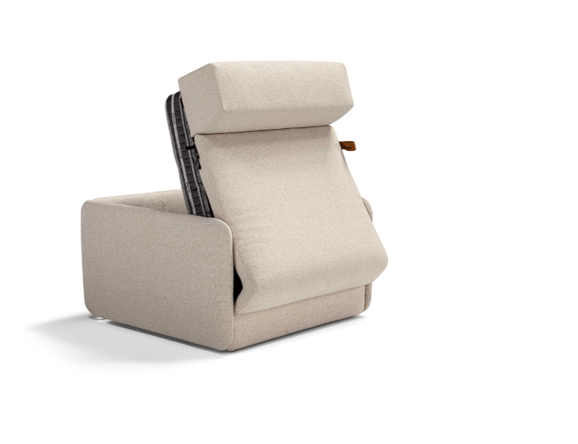 Išskleidžiama sofa-lova su žemais nugaros atlošo pagalvėlėmis.